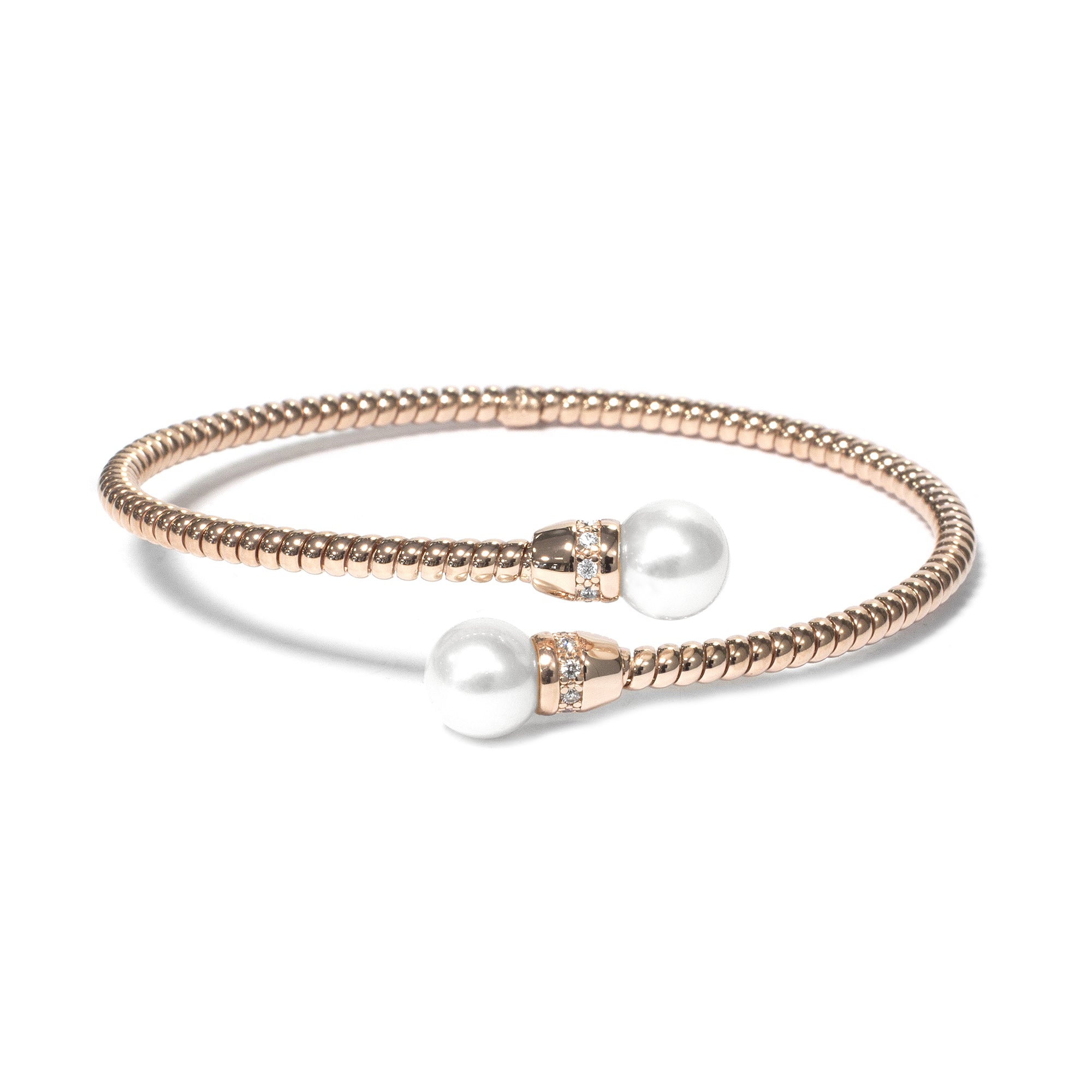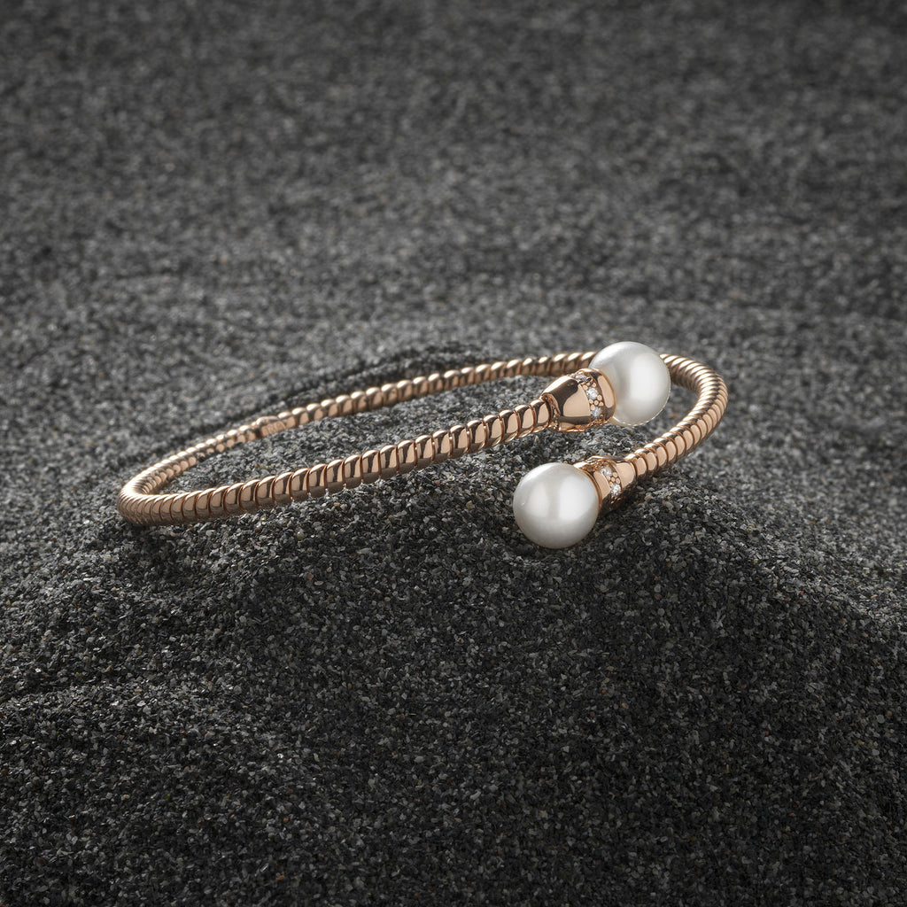 BR-ISI02ZC Ladies Rose GP Silver Pearl Bangle