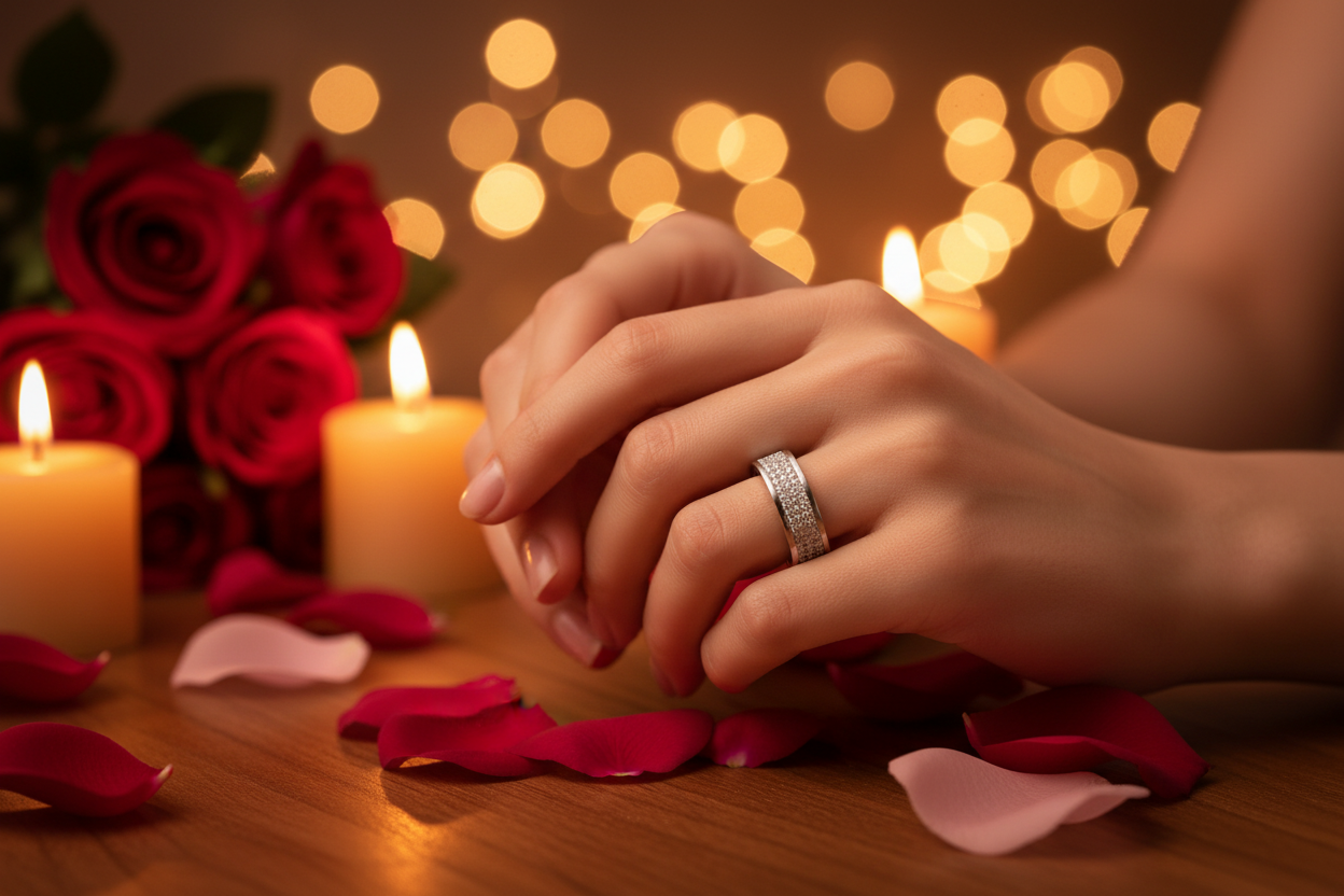 Stainless Steel Ring with 3 rows of diamonds. 135 Diamonds on average depending on ring size, 1.98ct. Total Weight average.