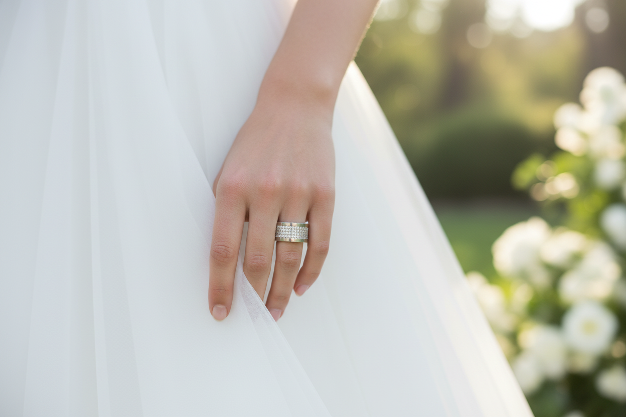 YuMa steel 12mm Pave ring set 5 incredible rows of diamonds going half way around.