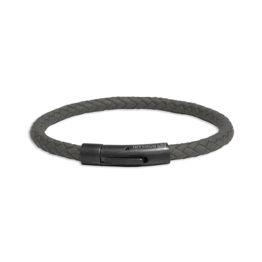Bracelet: Dark Grey Rubber Bangle Bracelet, Black Rhodium-Plated 925 Silver Push-Button Clasp.