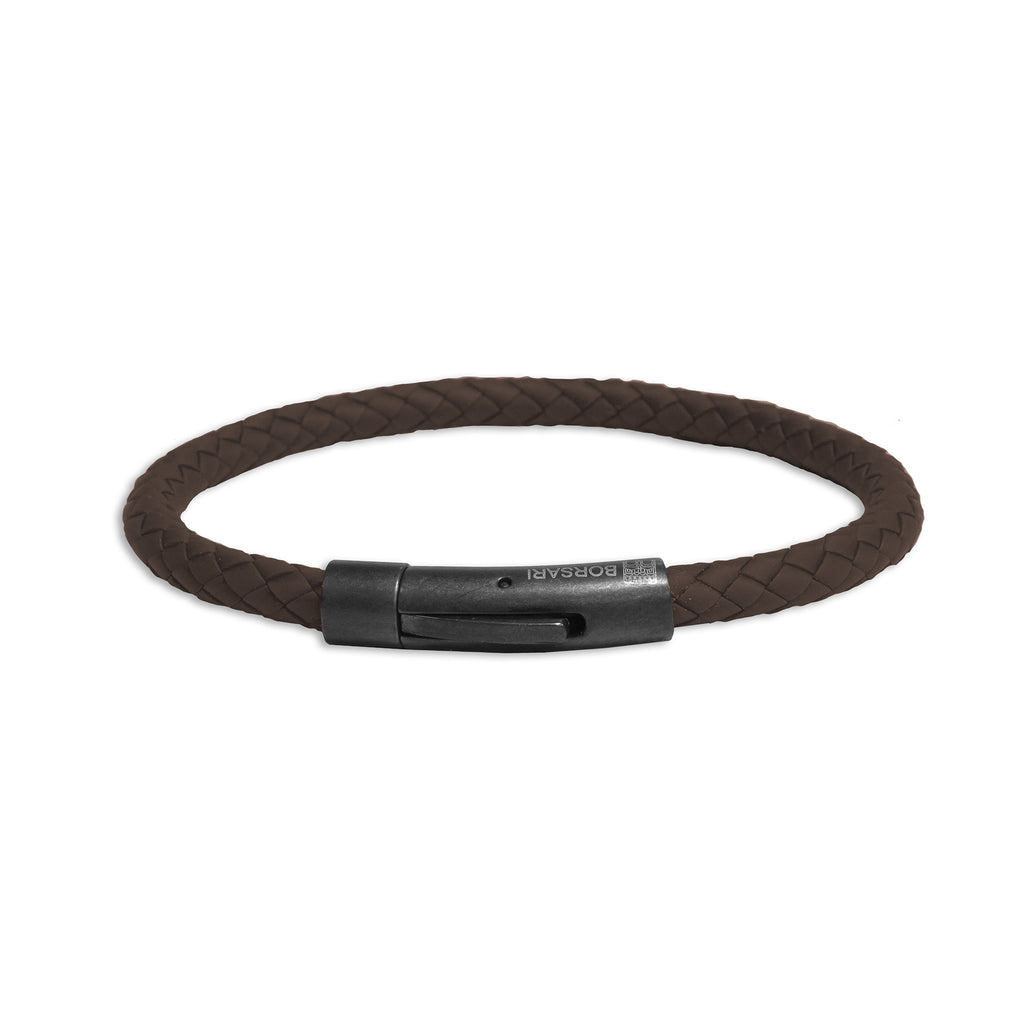 Bracelet: Brown Rubber Bangle Bracelet, Black Rhodium-Plated 925 Silver Push-Button Clasp.